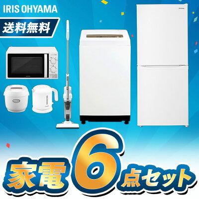 【家電6点セット】家電セット 一人暮らし 新品 6点 アイリスオーヤマ 冷蔵庫142L+洗濯機5kg+電子レンジ+マイコン炊飯器+掃除機 +ケトル 東日本 西日本 新生活セット 冷蔵庫 洗濯機 電子レンジ レンジ 炊飯器 掃除機 クリーナー