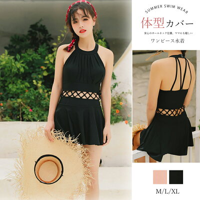 ホルターネック 水着 ワンピース 体型カバー 背中 開き リゾート 水着 おしゃれ ママ 水着(T)