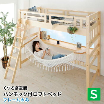 【送料無料】ハンモック付き ロフトベッド Hammox ハンモックス 木製 シングルベッド ハイタイプ 棚付き