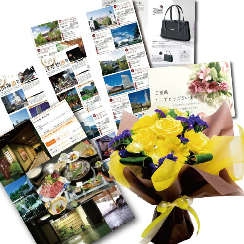 お祝い 父親、彼氏、上司、旦那様など男性に贈るバースデープレゼントや退職祝い(定年退職) 還暦のお祝いには、体験も贈れるカタログギフト(10,000円15,000円・20,000円30,000円)とイエローバラ花束やアレンジメントのギフトセットがおすすめです。